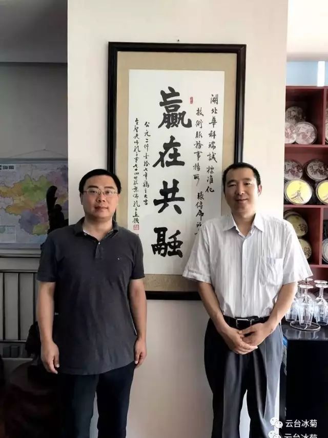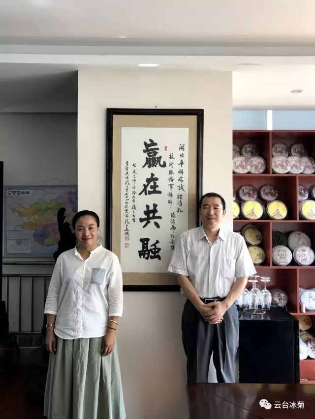 湖北焦作商會張傳虎會長(圖左)與云臺冰菊崔愛敏總經理(圖右)共商云臺冰菊發展宏圖
